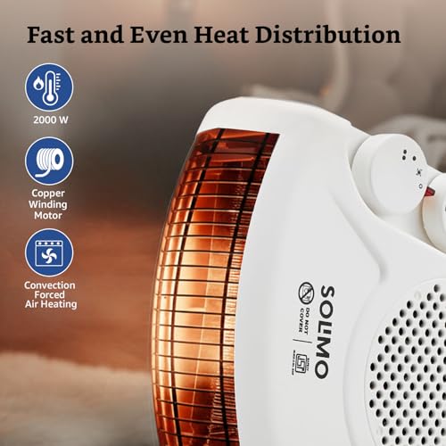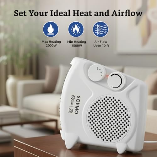 Amazon Brand – Solimo 2000/1000 Watts Room Heater with Adjustable Thermostat (ISI certified, White colour, Ideal for small to medium room/area)
